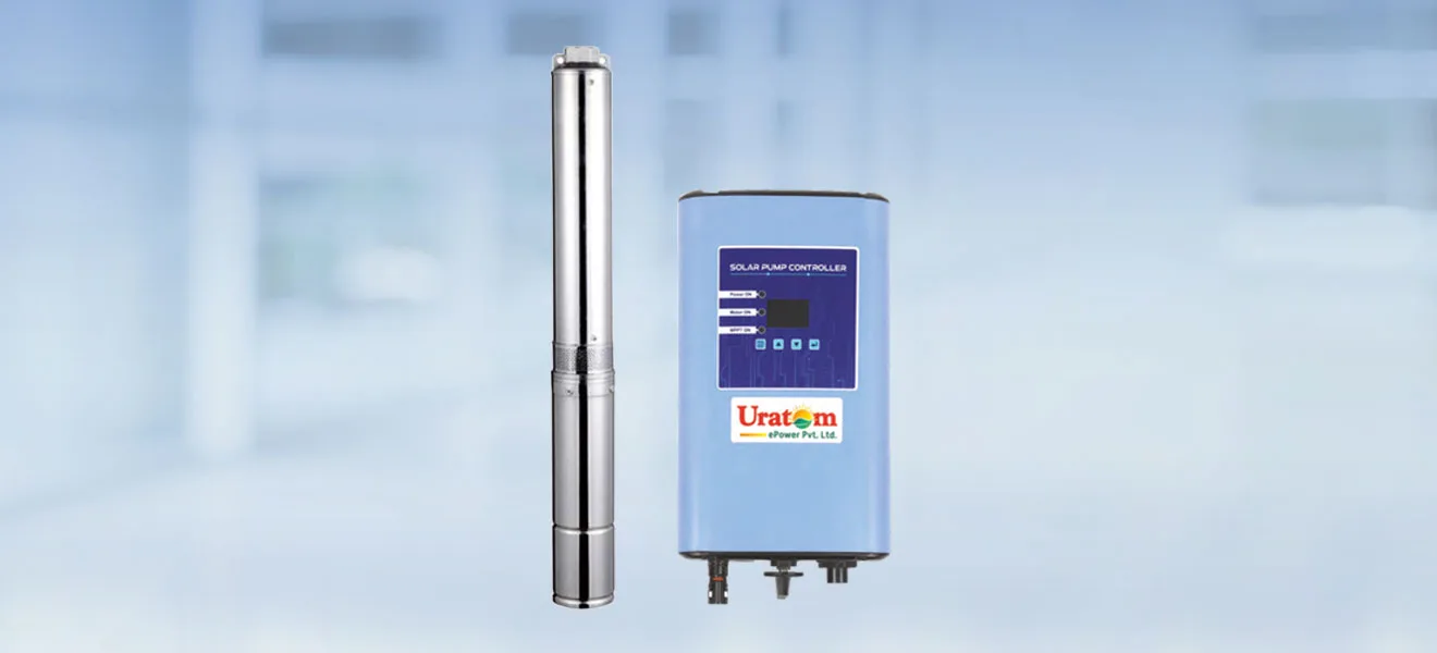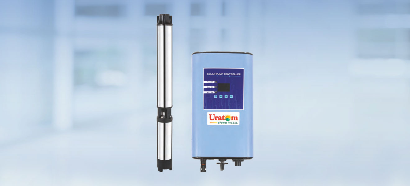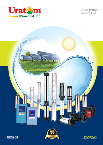 Uratom has a specially designed water-filled 6 pole BLDC/PMSM Cast Iron submersible motor and Helical Rotor pump with maximum utilization of solar energy during sunny days, BLDC PMSM motor set has 30% higher energy efficiency than conventional ac submersible pump. V3-3H series is suitable for 3.5″ or above bore well dia.